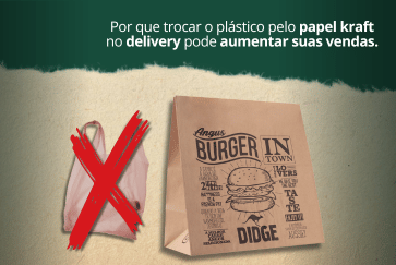 Cartuchos (fast food e delivery) e sacolas ecológicas em papel kraft personalizados em formatos variados.